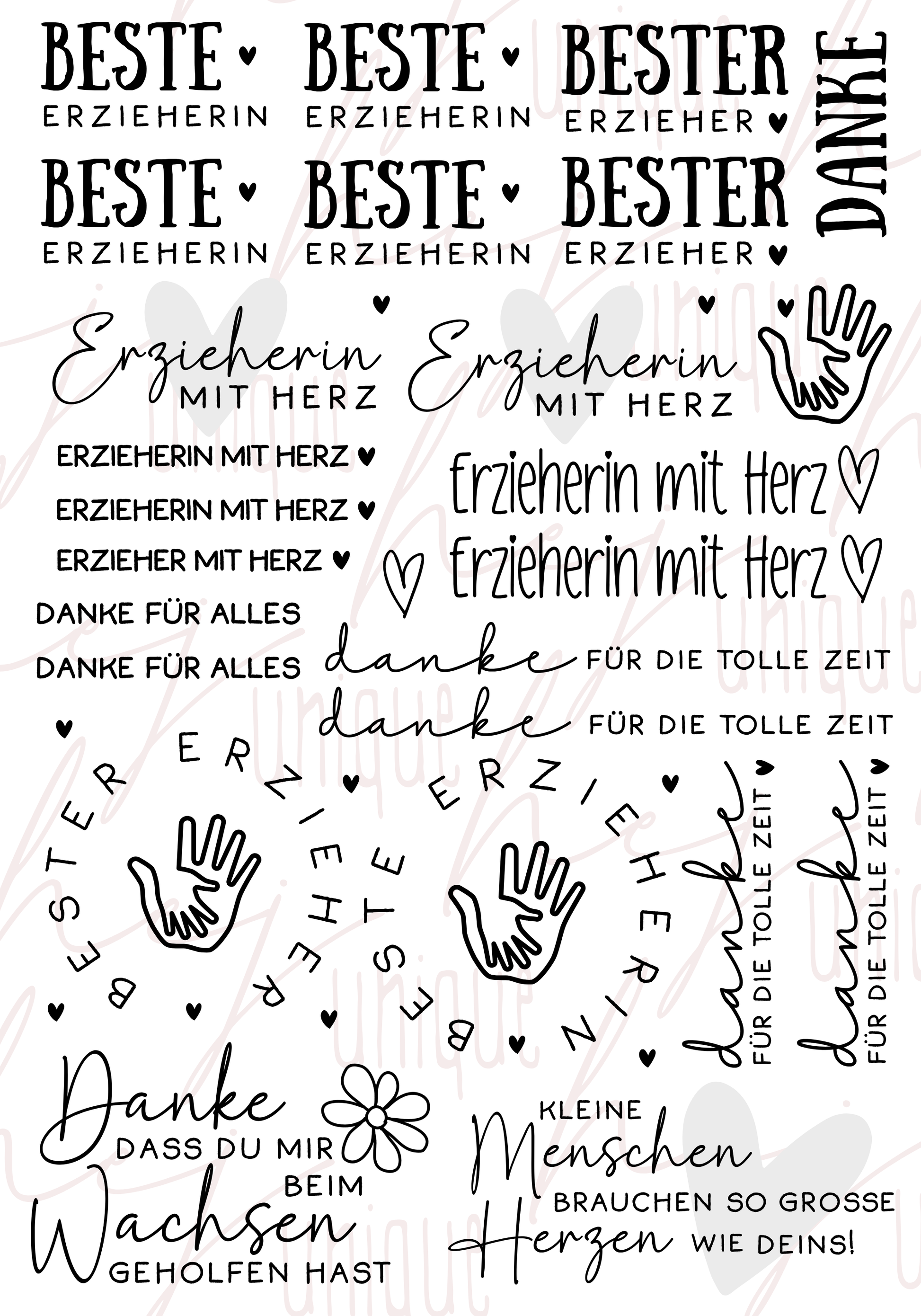 Die Anwendungsgebiete sind sehr vielseitig. Sie eignen sich perfekt für Verzierungen/ Beschriftungen jeglicher Gegenstände des täglichen Bedarfs (z.B. Tassen, (Kerzen-)Gläser, Dosen, Blumentöpfe, Vasen, Trinkflaschen, Brotdose, Kerzengläser, Schubladen u.v.m.).