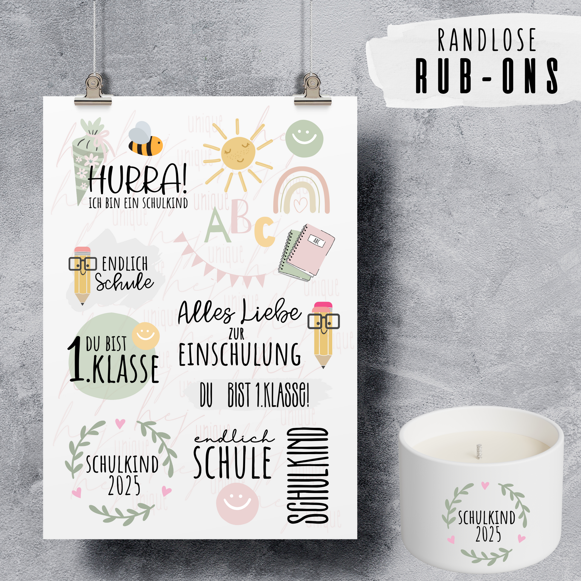 Rub-On Bogen "Einschulung rosa" A5