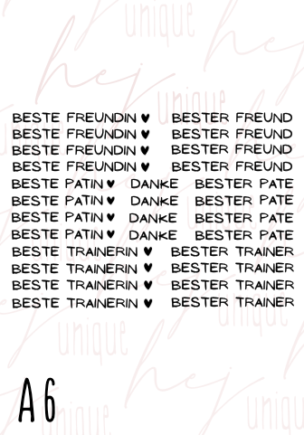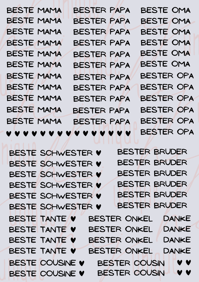 Die Anwendungsgebiete sind sehr vielseitig. Sie eignen sich perfekt für Verzierungen/ Beschriftungen jeglicher Gegenstände des täglichen Bedarfs (z.B. Tassen, (Kerzen-)Gläser, Dosen, Blumentöpfe, Vasen, Trinkflaschen, Brotdose, Kerzengläser, Schubladen u.v.m.).