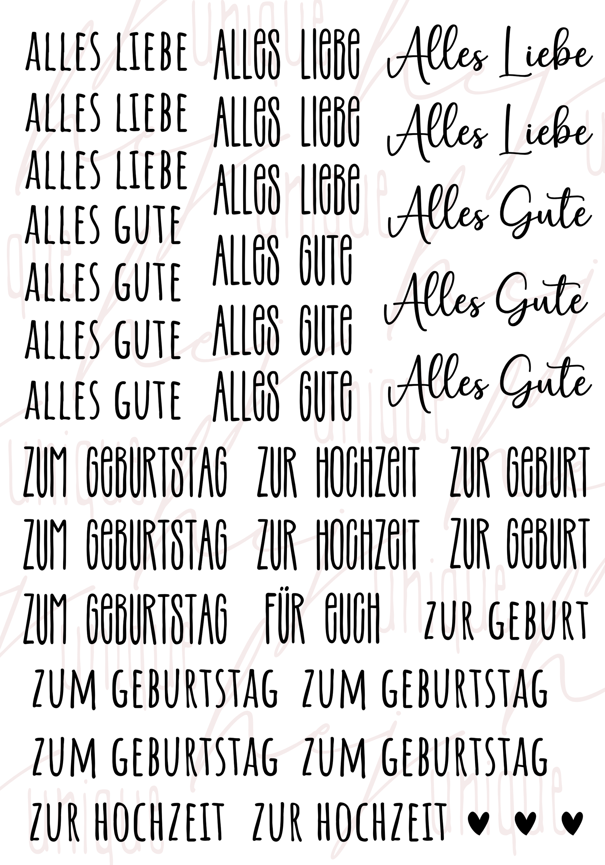 Rub-On Bogen "Schriftzüge besondere Anlässe"